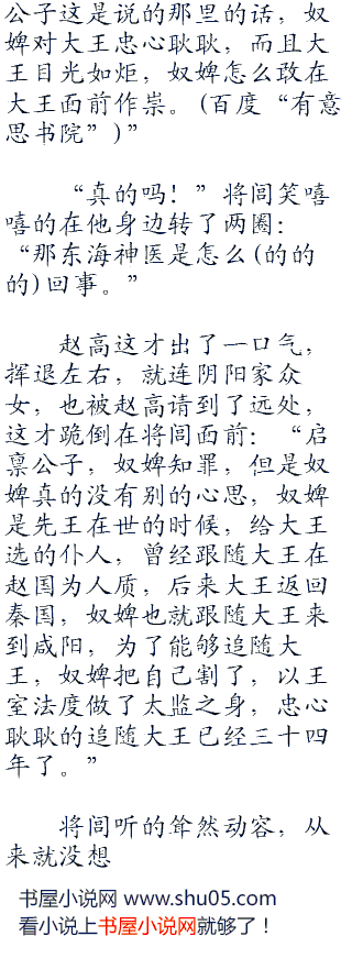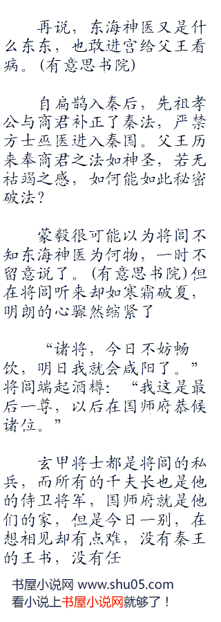 蒙毅笑道:“秦王身体虽然有小恙,但是赵高请了一个东海神医入宫,现在已经没事了。”