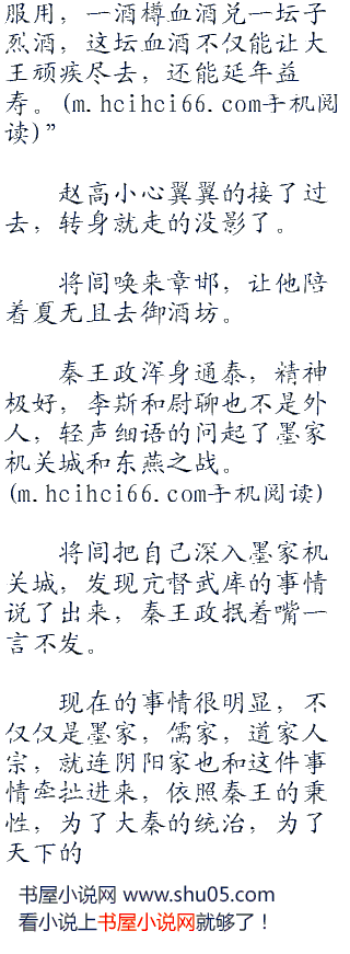 夏无且取了几种奇珍,放入血酒之中,捧给赵高:“封存一个月,然后兑新酒