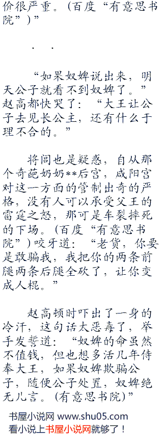 秦王政根本就不看这个儿子苦瓜一般的脸,六年的时间,罗网组织时时刻刻的跟随在他身边,可以说对他的了解,秦王政远远超过将闾自己,大声叫道:“赵高。”