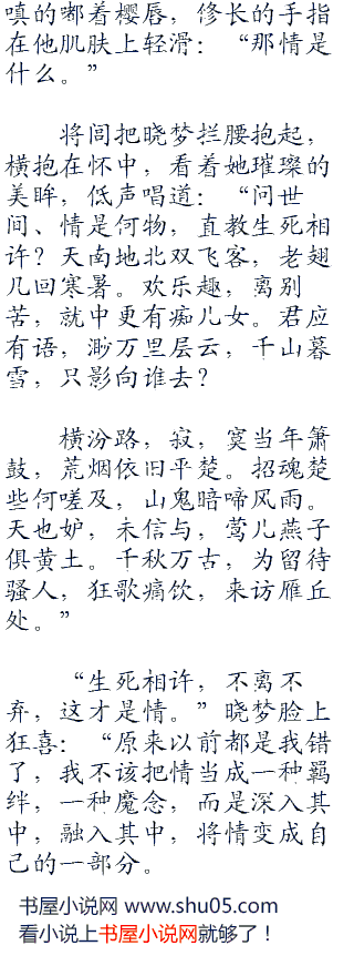 将闾一句只羡鸳鸯不羡仙,已经让她心中情丝萌动,而将闾最后的保证,也让她知道了什么叫男人的呵护。