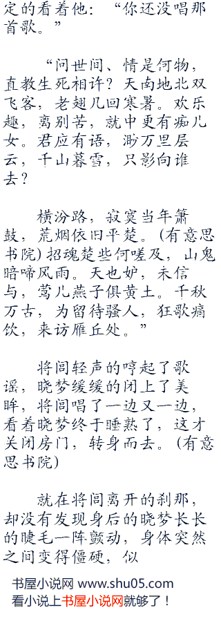 轻柔的月色透过凤楼的雕栏,轻轻映照在凤楼之中,晓梦那明亮的眼睛就像是天上的星辰一样,深邃中带着浓浓的不舍。