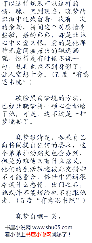 晓梦并不需要将闾答应他什么,作为大秦的公主,晓梦有绝对的自由,追问将闾既有少女的羞涩,也有对未来的憧憬,但是她并不看好二人的未来,轻声一叹:“今天你走出凤台,但是我却不知道还有没有明天。”