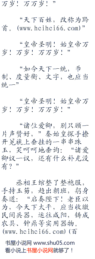 “皇帝圣明!始皇帝万岁!万岁!万万岁!”宝座底下,群臣又发出欢呼。