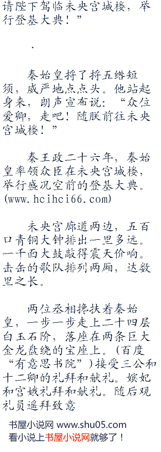 咸阳宫里,立即回荡着响亮的应和声:“皇帝圣明!始皇帝德兼三皇,功过五帝!始皇帝万岁!万岁!万万岁!”这些声音齐整划一,好似从一张嘴里发出的。每位大臣脸上,都释放出璀璨的笑容,而且精神无比振奋。不少人激动得泪花闪闪。