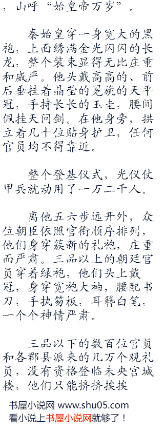 “废除‘孤家’、‘寡人’这些陈旧称谓,皇帝自称‘朕’,以示至高无上、至尊无比,别的任何人不得僭越。”秦始皇扫了一眼宝座下的朝班,神态威严地朗声下谕:“朕为始皇帝,后世以数计,二世、三世至于万世,朕的江山将传之永世!”