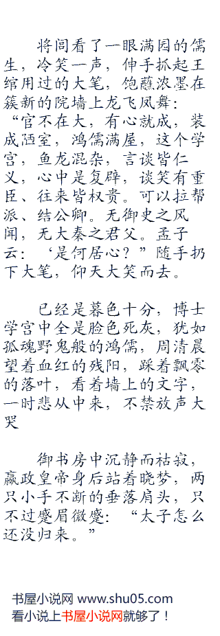 从来就没想过,一手筹建的博士学宫,竟然隐藏着这么大的阴谋,而一群博士已经瘫倒在地,老泪横流,如果不是铁幕铁殇两个镇殿将军在,咬死侯生的心都有了。