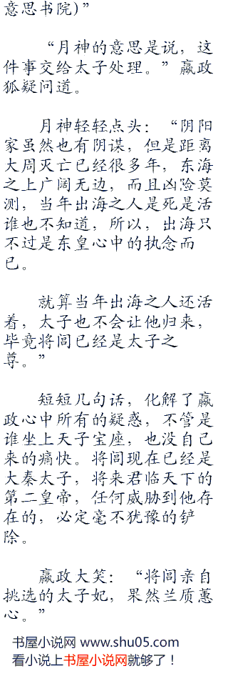 嬴政黑着连点点头,这件事他如何不清楚,罗网组织不仅盯着将闾,连他一群老婆也没放过,每天见什么人,说什么话,都会清清楚楚的摆在御案之上。
