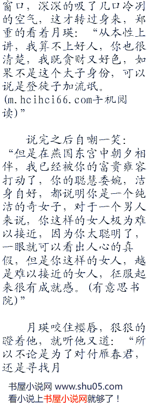 “这里和燕国东宫没有什么不同。”月瑛一声叹息:“还是老样子,没什么好,也没什么不好。”轻柔的语气,带着一股幽怨,让将闾心中更加的惭愧。