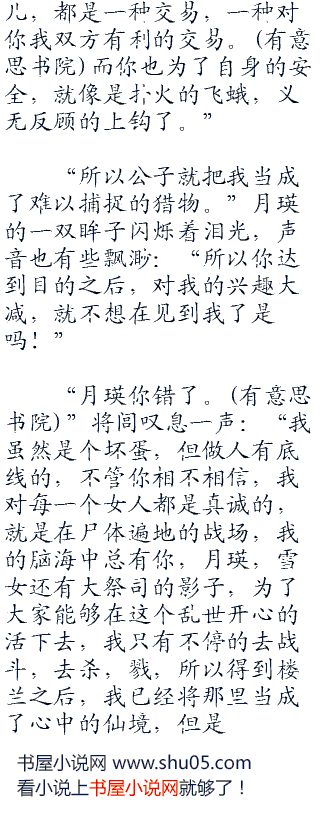 “你还不了解我。”将闾快步走了过去,伸手就要抱住她,却没她轻轻一躲:“公子既然心中没有想我,又何必来纠,缠我。”话音未落,珍珠般的泪珠儿簌簌而落。