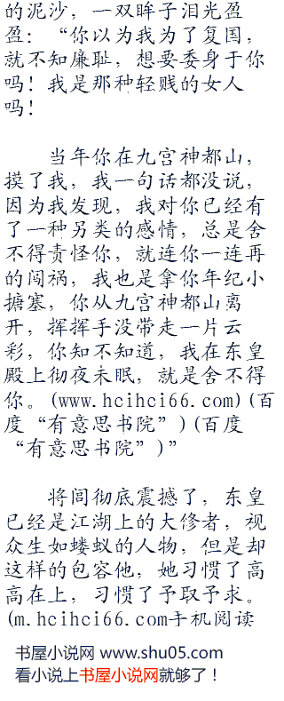 “恩断义绝。”东皇顿时暴怒,双,峰一阵荡漾,看样子这位从来就没拿自己当女人的公主根本就没穿肚兜,一双小手怕打着他的胸膛:“你知不知道,我一念之间可以让你生,转念就可以让你死。但是我舍不得。我从来就没这样在乎过一个人,也