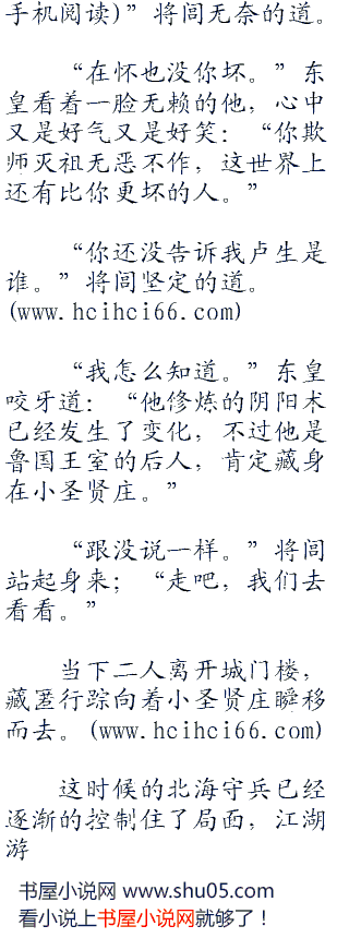 东皇没有真气,就像是情人撒娇一样,将闾也懒得躲避,挨了她一脚笑问道:“卢生的脑袋中不可能没有东西,要不然他回来干嘛!你以为一叶扁舟渡过万里汪洋很好玩吗!”