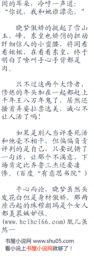 刚才是误会出手,现在变成了二女争夫,一个是冷傲如冰,一个热情如火,这两个女人天生就是死对头。将闾感觉自己已经没有活路。