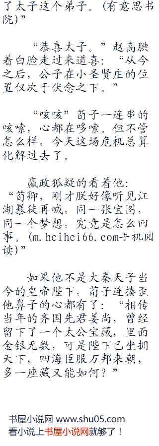 嬴政微微一笑:“朕这次不远万里前来桑海,只是为了这个小子,这小子不学无术最爱胡闹,但却深的朕的喜爱,所以朕想将这小子托付给荀卿管教,不知道荀卿可否给朕分忧。”