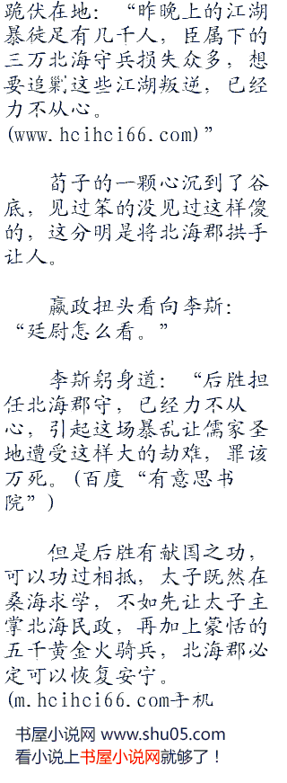 将闾笑嘻嘻的看着满头大汗的荀卿,站起身来先把他搀扶起来:“荀卿是李斯的老师,也是我大舅子的老师,说起来都不是外人。