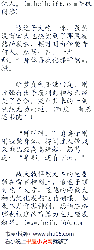 逍遥子也是倒了八辈子血霉,在另外一处幻境中碰见了大司命,少司命和一个手舞星棍的红裙女,刚刚死里逃生使用化蝶之遁逃了出来,没等他站稳脚跟看清楚周围情形,排山倒海的银芒便呼啸而至。