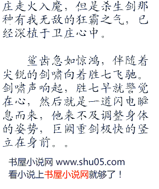 鲨齿在剑谱上没有排名,但是从来就没人敢面对这把妖剑,自从剑圣盖聂的渊虹断在鲨齿剑下,妖剑之名如日中天,现在所有人都想看看究竟是鲨齿强还是胜七横。