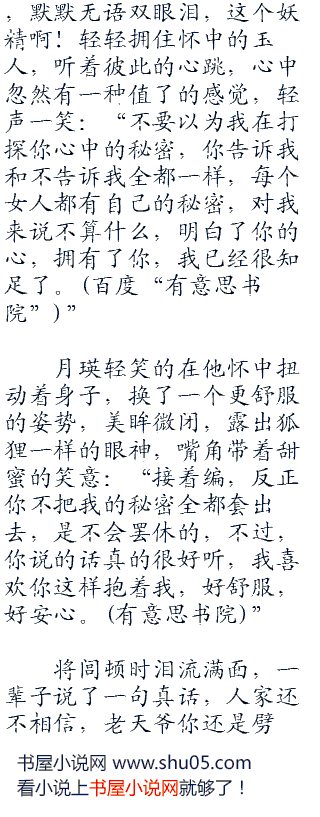 将闾一手抚,摸着她柔顺的长发,一手在她柔美的身体上轻轻移动,月瑛偎依在他怀里,美眸半睁半闭,享受着爱人带给她的温柔。