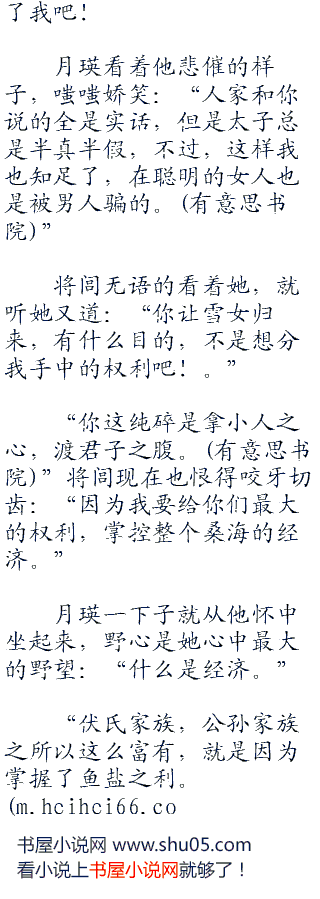 “呸”月瑛轻轻啐了一口:“我要是只有一个身子,纵然是容貌绝世,太子殿下也懒得搭理我,更别说费尽心机哄我骗我,你身边的女人,全都是精明能干之