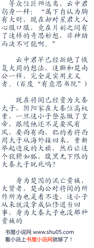 他也怕这些匠师醒过味儿来之后,担心将闾把他们给宰了,那样就势必不肯拼死用命,所以暗自点醒他们,老子高薪雇佣你们一辈子,包括你们的子孙后人。成为大秦皇室的御用工匠。