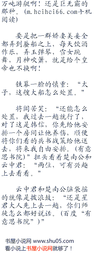 楚南公,云中君和韩信早就看呆了,就是桑海富豪之地,海月小筑精美绝伦,也没办法和这艘大船上的建筑相比。完全就是垃圾一般的东西。