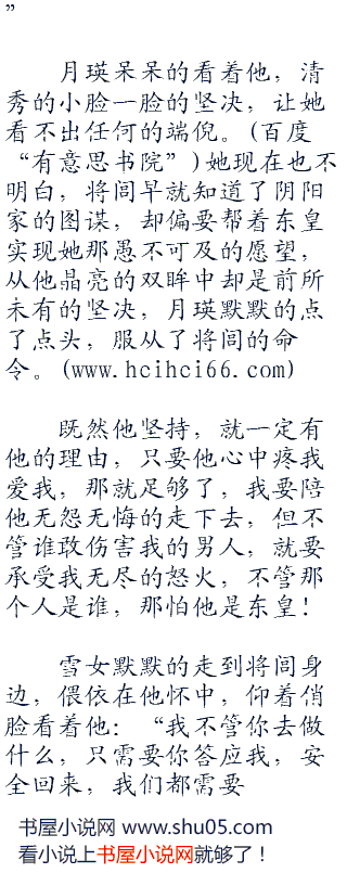 “这件事就这么定了。”将闾咬牙道:“月瑛,你放心,七国内战我都安然无恙,蜀山就是龙潭虎穴,我也能闯一闯,这件事没有商量的余地,你也不要持宠而娇,公也好,私也好,无论我说什么,你都得听,对不对?