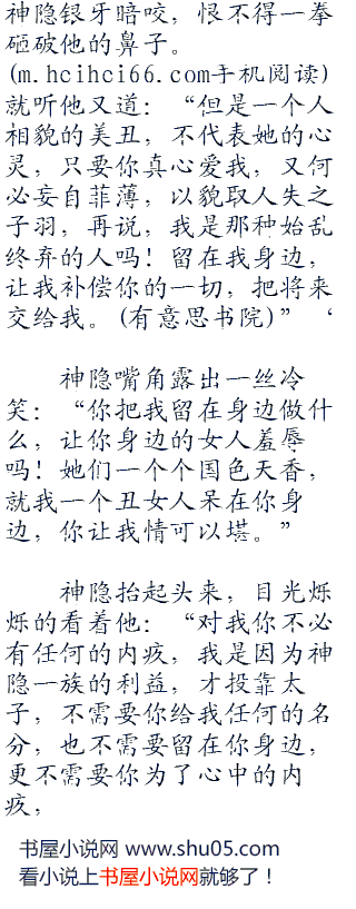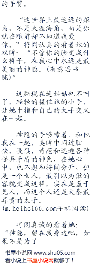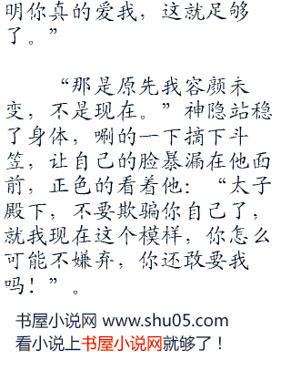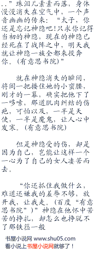 神隐凝视着他,悲声道:“太子殿下,不管是因为麟儿,还是脸上的伤,神隐都不能在委身于你。我一辈子都没喜“零零零”欢过一个男人,在部族中虽然和太子相处短暂,但是神隐已经知足了。太子,你就忘了神隐,就当我死在了战阵之中,我只希望你记住神隐最美的容颜,记得有一个在百越爱你的女人,神隐就足矣。”