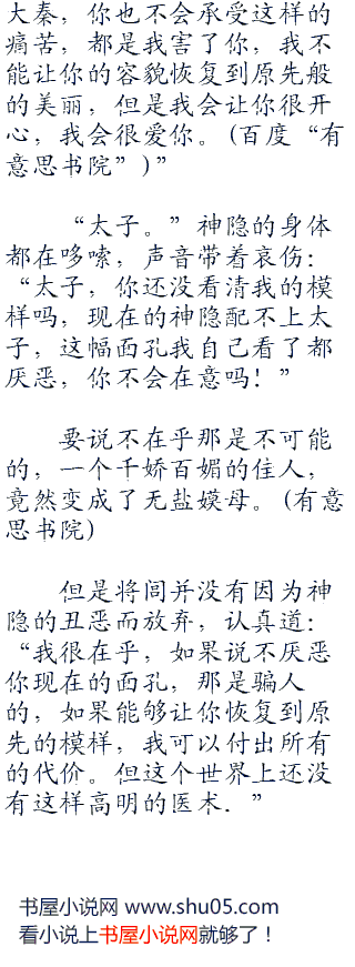 神隐哀怨的看了他一眼:“可是,我走的匆忙,结果被利箭所伤,我的脸.....”