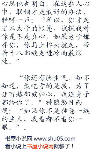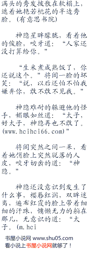 女人最在乎的是她的相貌,尤其是神隐这样国色天香的美人,突然之间变成这个样子,对她的打击可想而知。想要留下神隐,就的让她明白,自己喜欢的不仅仅是她的容貌,还有她的心,看着神隐凄苦的双眼,将闾慢慢的将她推,到在软榻上。