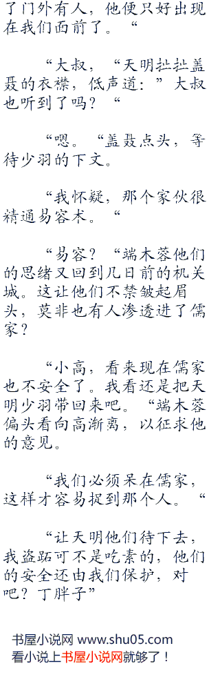 “是。”天明心中一直记得端“零零零”木蓉在镜湖医庄对他的教训,骨子里对她有一种敬畏感。