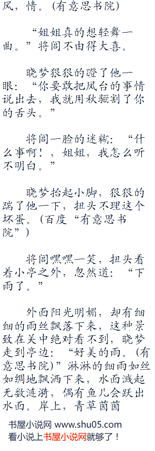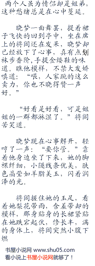 晓梦脸色越来越红,就像是滴血一般,上次在凤台温泉跳舞,让这厮占了大便宜,就连少女最隐秘的地方,也被他亲了一口,那一口好像将魂魄也吸出来一般。似嗔似喜的站起身来,柔美的折腰而起,长长的衣带垂在腰间,万千白丝随着她的动作摇曳生姿。