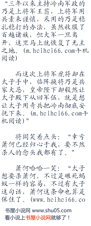 将闾大笑:“当年征战楚国,我并没有亲临震泽,不过先剪其羽翼,在集中兵力逼他决战,正是兵家奥义,今日得到萧何相助,真是上天助我大秦。”
