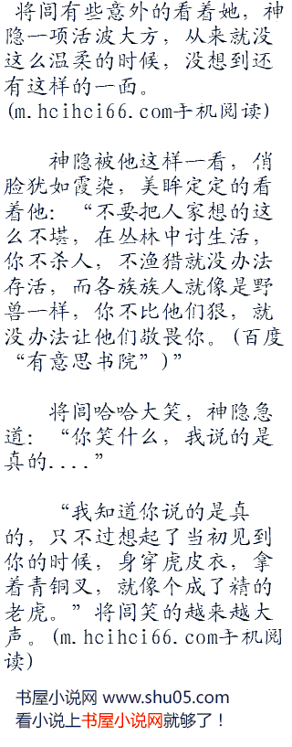 神隐噗嗤一笑:“我还以为你担心熊心逃脱,却没想过你竟然在想这个,真不明白你们男人的心思,杀起人来毫不眨眼,那像我们在百越,每天都在和森林中的野兽争夺口粮,每一天不去渔猎就没有饭吃,那一天