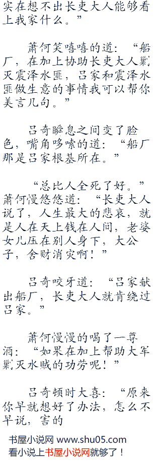 吕奇脸色一变:“功曹大人这是什么话,震泽水贼和吕家有什么关系。”