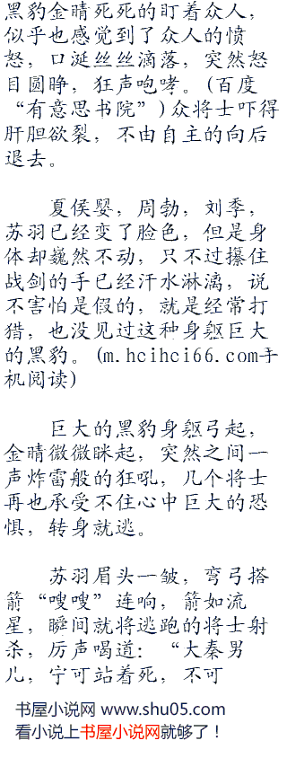 那道黑影竟然是一只身高八尺,长有丈二的黑色凶兽,身躯曲线优美,就像是一头黑豹,但他娘的,豹子有这么大的吗。