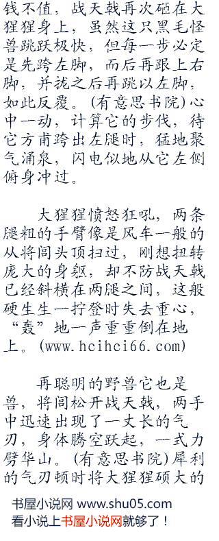 这畜生力大无穷,而且智慧明显比普通的大猩猩高上一登。身上的长毛就像是盔甲一样,战天戟犀利的矛尖斩在上面,只能让它留下一道血口。