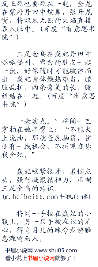 焱妃身体如火,雪白的肌肤已经是一片嫣红,身上升腾的热力已经超过了身体的极限。将闾心如电转,三足乌鸦已经和焱妃融合为一体,自己却想要镇压三足金乌,却是用错了方法,自己灌输龙蟒真气,反而让火力更加的泛滥,非但无助反而有害。