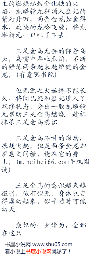 龙兮魂游最大的能力,就是炼化和消除异种真气,将闾找对了方法,索性帮助焱妃将三足金乌彻底炼化。