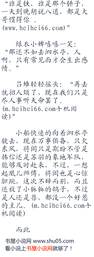 吕雉嗔怪的瞪了她一眼,又回头看着将闾的小舟,眼神有点迷茫:“他若是肯沉迷于我,早就迷了,还会有今日吗!”想起当日在火船上穿着贴身小衣,美丽的身体都让他瞧了个遍,又轻声叹了口气。