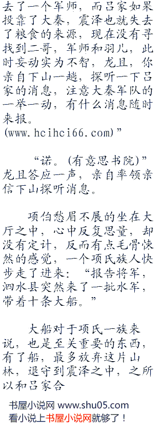 项伯在大厅中团团乱转,反复的思量,在军事上他不如项燕,在分析军情上远逊于范增,转的龙且头都晕了,就见他跪坐在席上,沉思道:“屈先生已死,震泽就失
