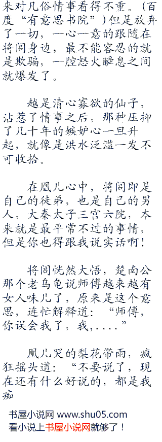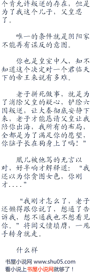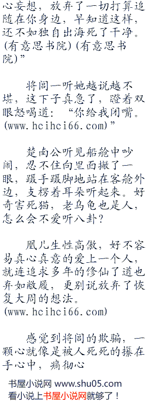 “不要过来。”凰儿恶狠狠的盯着他,俏脸上满是悲伤:“你现在还骗我。不就是舍不得那两个狐媚子,才不肯陪我去蜀国。”