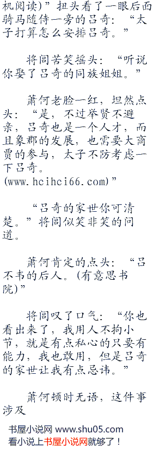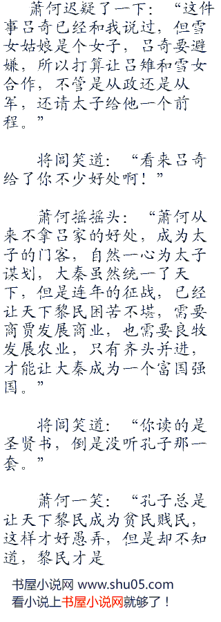 楚南公跟随在将闾,凰儿身后,撇了站在吕奇身边的吕雉一眼,这老头早就认出了这是当日和将闾一起欣赏荷花的那个女孩子。