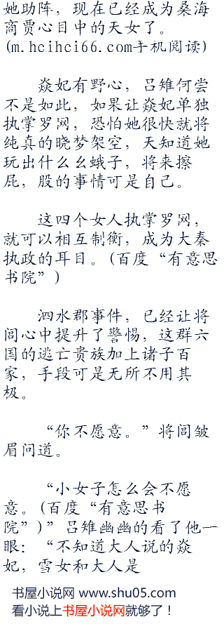 “为什么不能。”将闾傲然一笑:“大秦也有女子当大将军掌管十万铁骑镇守九原,还有一郡之主执掌楼兰,焱妃和雪女也是如此,如果你愿意,也可以成为大秦的官吏。”