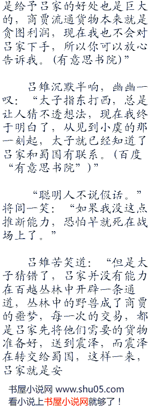 过了一会儿,里面还没什么动静,将闾干咳一声道:“吕姑娘,蜀国的小虞来到泗水郡,也是来和吕家做生意吧!”