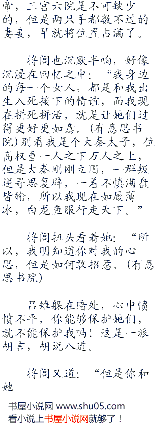 “那是当然。”将闾傲然道:“凰儿的身份说出来吓死你,所以,你也别一哭二闹三上吊,这样解决不了问题。我要是贪图你的女色,就凭你能逃得了吗!”