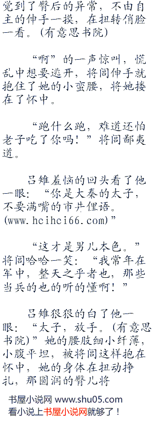 将闾却清醒的很,身体中的那股邪火,让他忍不住大手顺着吕雉优美的身体曲线滑向了柔润的丰臀,她昨晚匆匆抓起两件衣裳逃进洞窟深处时,就只穿了这外衫。如今轻轻抚上去,那一层薄衫毫无障碍,着手处丰若有余、柔若无骨。