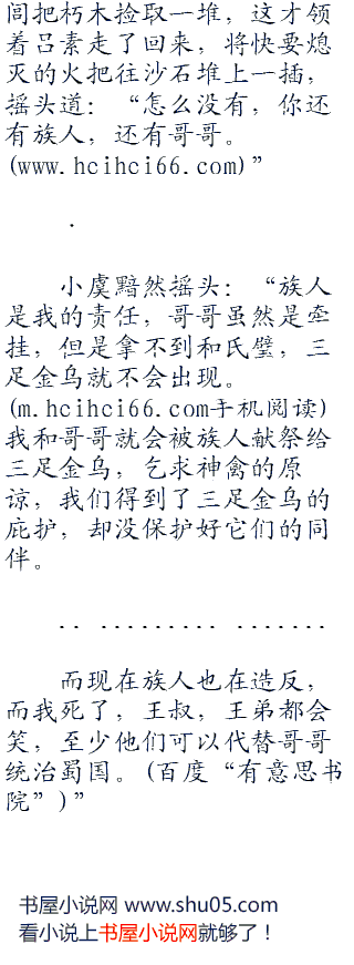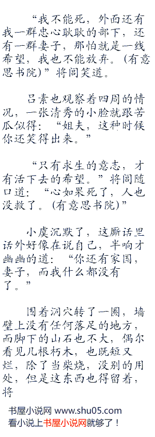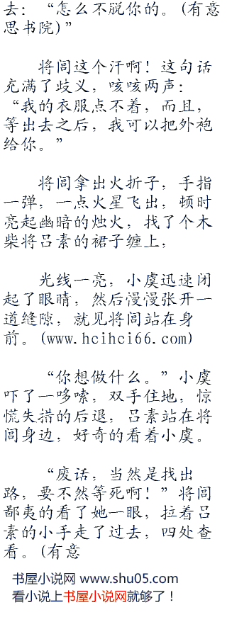 “傻丫头,想什么呢。”将闾苦笑道:“我要做个火把,想办法出去。”