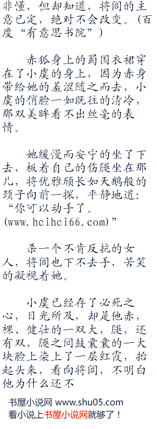 现在的小虞身上只有一件宽大的袍服,身体晃动之间,尽显妙曼的身段,这一路走来,她都是走在将闾的身后,不肯让这个混蛋看她一眼,此时将闾看过来,她只是萎缩了一下,随即挺直了身体,再也没有羞恼之色,咬牙道:“杀我之前,能不能让我穿上族人的衣服。”