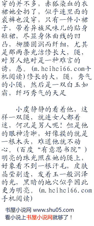 地穴之中,将闾坐在小虞身边,轻轻的撩起她的短裙,一条修长笔直,丰腴有度的腿就显露出来,上面浑圆如同玉柱,小腿纤秀美丽,肌肤紧绷,透出无限的活力,膝盖没有突出的骨头,十分流畅地把大腿小腿连接在一起,透出一种令人心神摇曳,神魂颠倒的美丽,只是在小腿一侧,露出一片淤青浮肿,破坏了整体的美观。