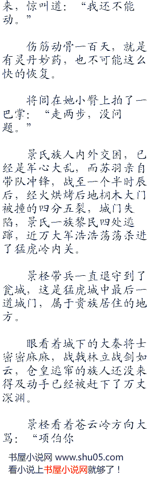 老秦兵攻打城池,绝对不是蛮兵可比的,三百弓箭手连续的发射狼牙箭,压得景氏族人抬不起头来。