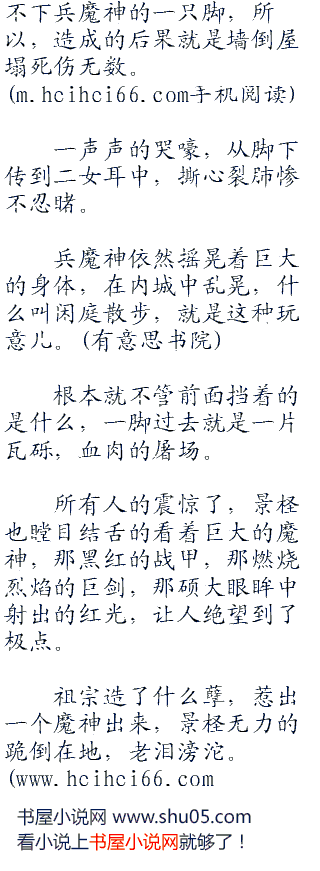 “轰”兵魔神一脚就把一座房屋踩到,里面的人连哭喊一声都来不及,就变成了肉酱。